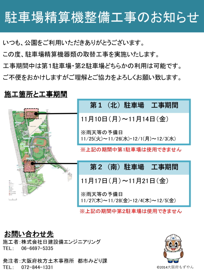 駐車場精算機整備工事のお知らせ