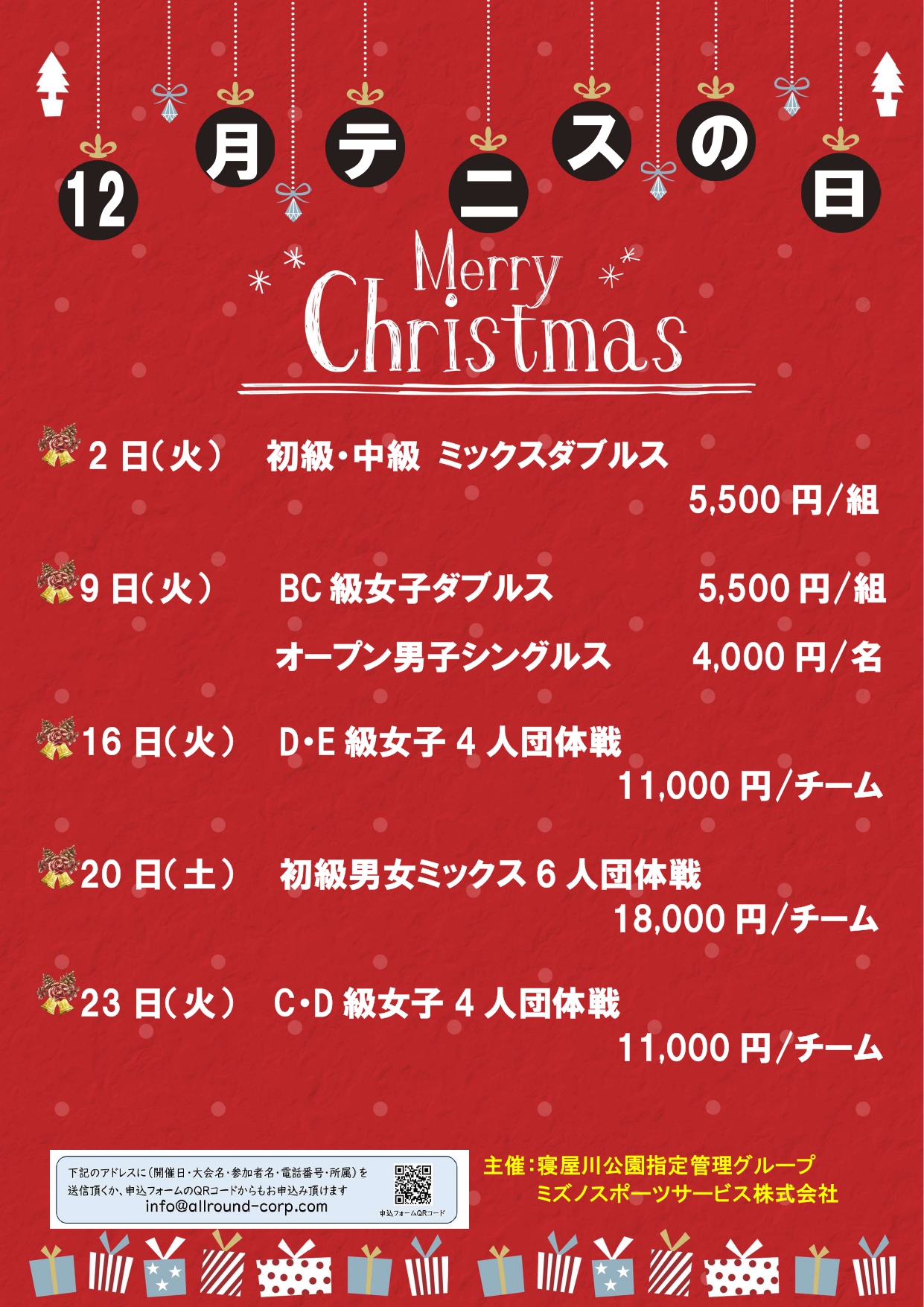 12月のテニスの日が決まりました! サンタさんもトナカイさんも元気にテニス! みんな元気に楽しくスポーツ三昧! 11月の日程も引き続きよろしく!!