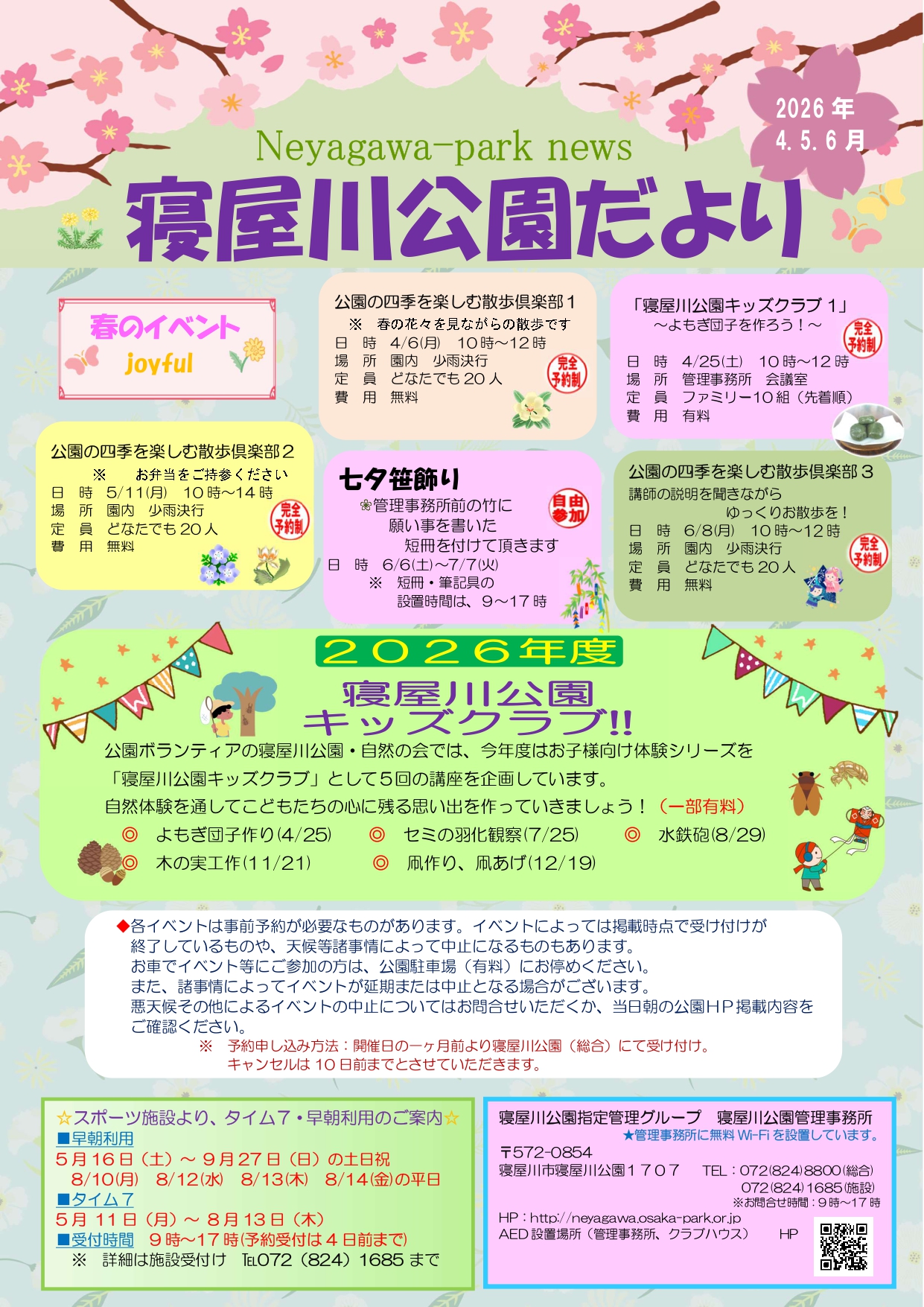 『寝屋川公園だより 2026年4・5・6月号』が完成しました!(^^)!