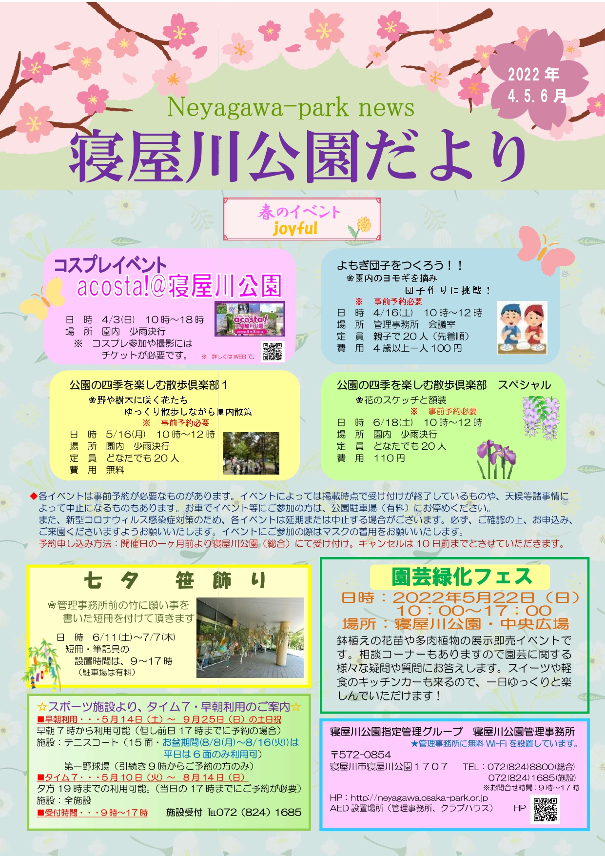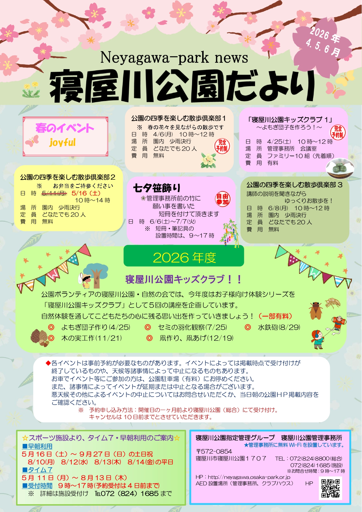 『寝屋川公園だより 2026年4・5・6月号』が完成しました!(^^)!